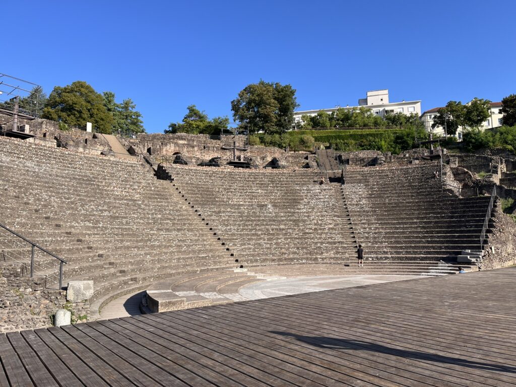Vi rekommenderar att ta funiculairen, linbanan, från Vieux Lyon till den romerska amfiteatern på Fourvière-kullen, gå en kort bit till Notre Dame-basilikan (fin utsikt över Lyon från båda) och sedan ta funiculairen ned därifrån. Den ingår i kollektivtrafiken, som man enkelt betalar biljett för genom att blippa sitt betalkort.