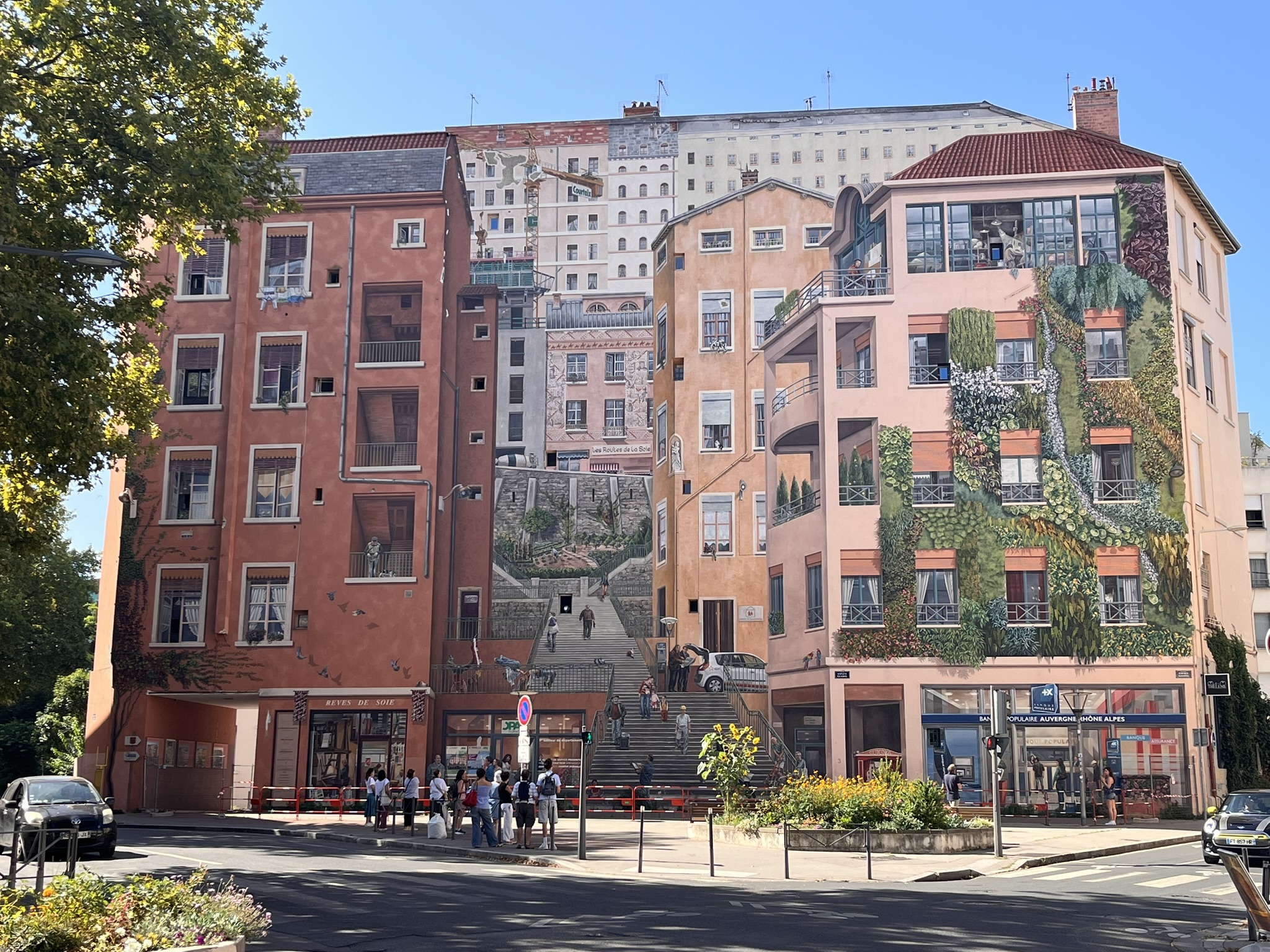 20E1740A-7FF6-4F34-A01C-D96A3D2A11F6_1_102_o Publicerad 2025-08-22 kl. 2048 × 1536 i Resa till Frankrike, en reseberättelse ← Föregående / Le Mur de Canuts, en trompe l’oeil-målning i Croix-Rousse.